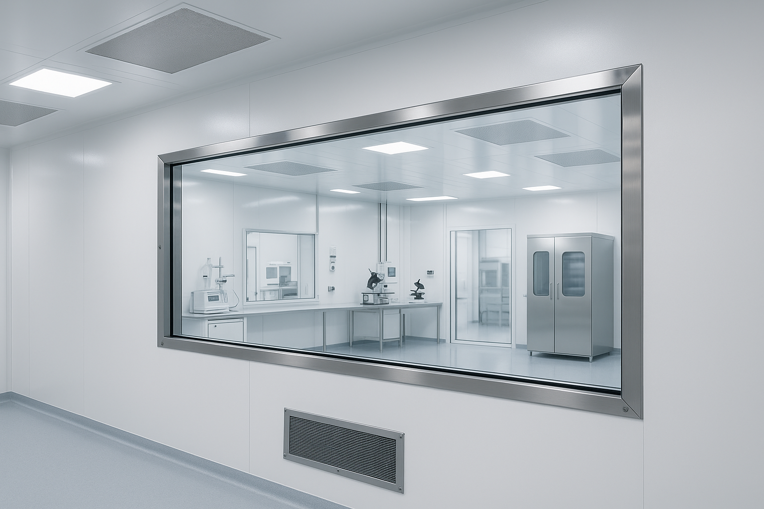 - Matériaux compatibles assurez-vous que les nettoyages répétés n’affaiblissent pas le cadre de la fenêtre, ne compromettent pas l’étanchéité ou ne produisent pas de particules microscopiques susceptibles de contaminer la salle blanche.